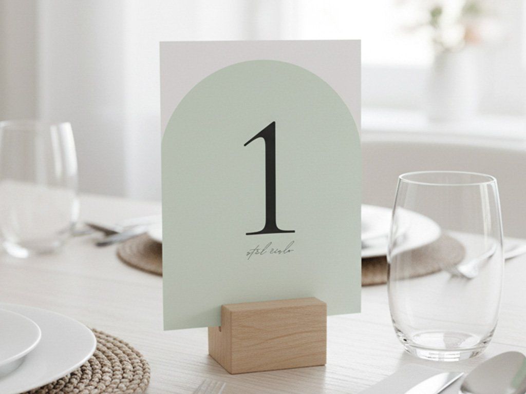 Číslo stolu Obloukové přináší do vašeho svatebního uspořádání jemnost a eleganci. Tento design s obloukovými tvary a stylovou typografií vytváří příjemnou atmosféru, ideální pro romantické a moderní svatby. Obloukový tvar dodává číslu stolu jedinečný a přitažlivý vzhled.